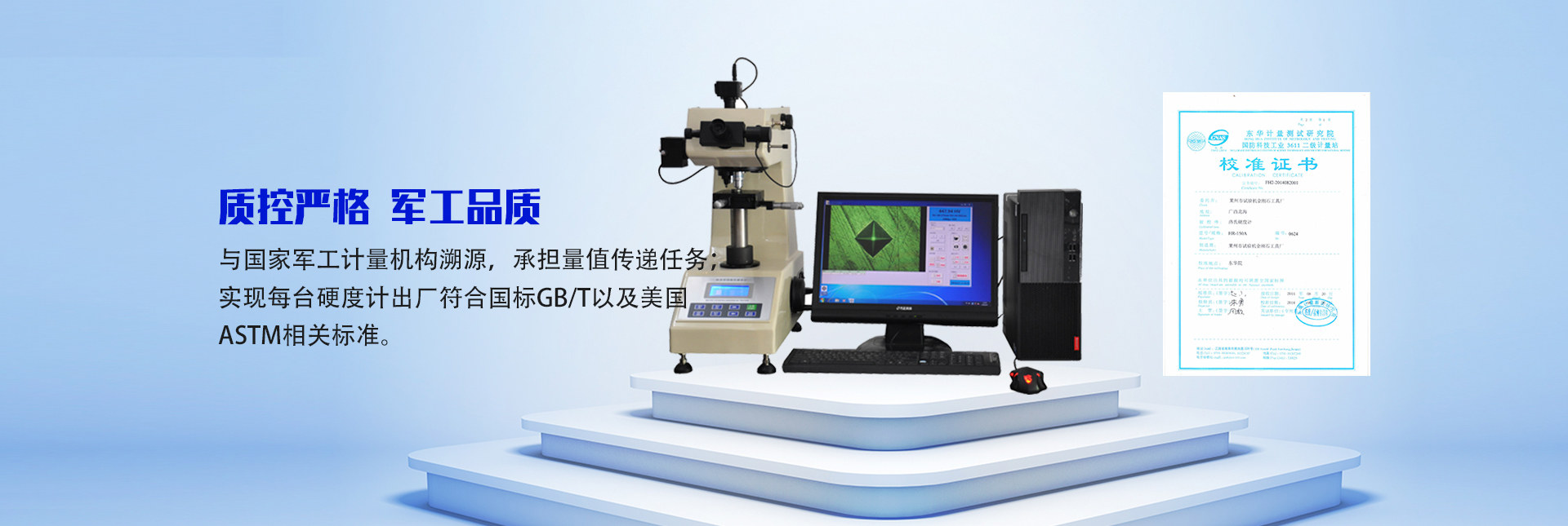 本廠以硬度測(cè)試研發(fā)與生產(chǎn)起家,擁有硬度測(cè)試領(lǐng)域核心技術(shù),現(xiàn)已發(fā)展成為出產(chǎn)九大系列金屬材料硬度計(jì)(布氏、洛氏、維氏、肖氏、里氏、韋氏、巴氏、多用硬度計(jì)、邵氏)、以及與硬度測(cè)試配套的金相制樣設(shè)備和部分光學(xué)儀器、并且擁有多個(gè)發(fā)明專(zhuān)利、多種儀器測(cè)試分析軟件著作權(quán)的綜合型生產(chǎn)企業(yè)。